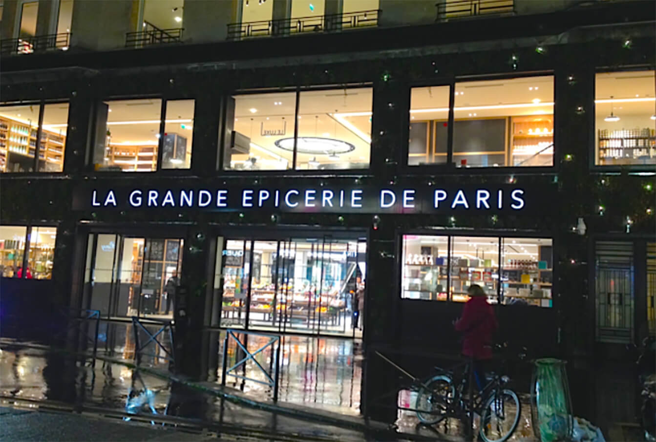Paris ist eine Stadt des Luxus, der Kunst und des Besonderen. Alles drei trifft auf die Grande Épicerie zu: diese außergewöhnliche Gewürzhandlung bietet eine fulminante Auswahl an Gewürzen und Kochzutaten für die Crème de la Crème der französischen Cuisine. Die unschlagbare Sortierung und hochwertige Präsentation der Produkte im Ladeninneren solle auch durch die Fassade des Geschäftshauses nach außen kommuniziert werden.