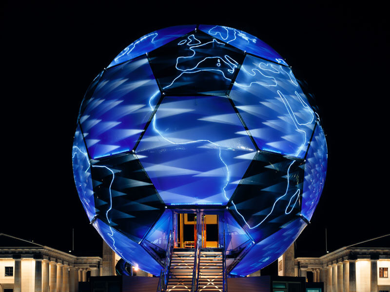 In Zusammenarbeit mit Andre Heller entwickelten wir die Beleuchtung/Projektion des medial bekannten FIFA WM Globus, welcher innerhalb von drei Jahren durch ganz Deutschland tourte. Die begehbare Raumskulptur, überzeugte durch ihre Größe und die spektakuläre Lichtatmosphäre innen als auch aussen.