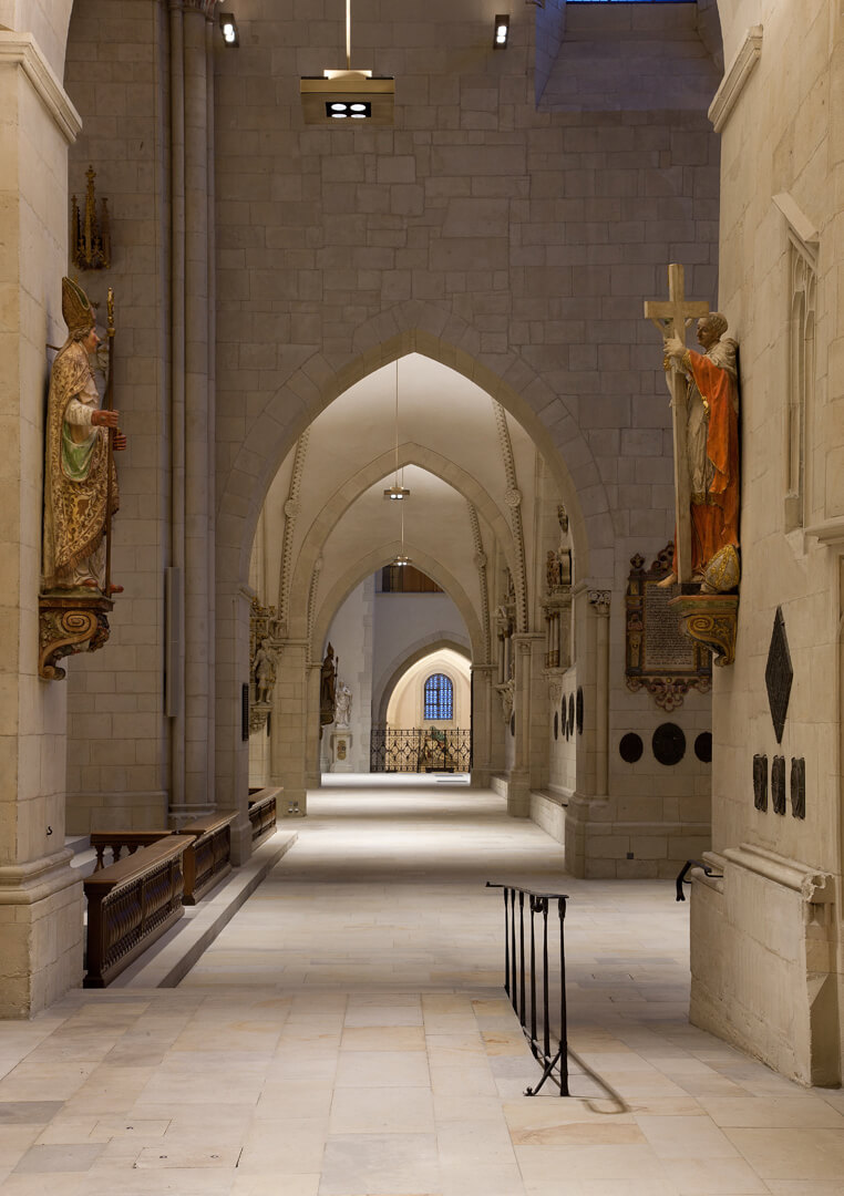Durch ein sorgfältig entwickeltes Lichtkonzept in Zusammenarbeit mit renommierten Lichtplanern konnten wir eine einzigartige Atmosphäre schaffen, die den Dom in einem völlig neuen Licht erscheinen lässt. Die Installation von rund 120 Messingleuchten, die eine individuelle Anpassung der Farbtemperatur ermöglichen, sowie die intuitive Steuerung über ein Touch-Display, setzen neue Maßstäbe in der Beleuchtung sakraler Räume. Dieses Projekt demonstriert unsere Kompetenz, traditionelle Werte mit modernster Technik zu vereinen und den Dom Münster als lebendiges Zeugnis kulturellen Erbes und technologischer Innovation zu präsentieren.