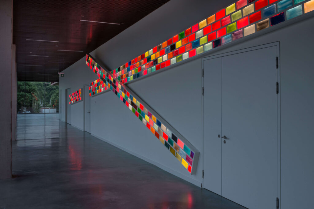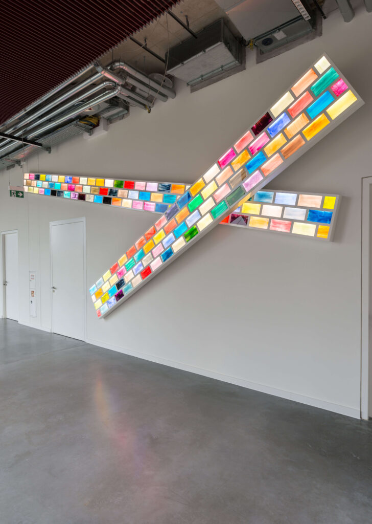 Diese Installation ist ein lebendiges Beispiel für die Verschmelzung von Kunst, Architektur und Interaktivität und lädt die Betrachter ein, die Dynamik von Licht und Farbe zu erleben. Es ist eine Hommage an die transformative Kraft der Kunst und ein Beweis für die visionäre Ästhetik von Paul Schwer.
