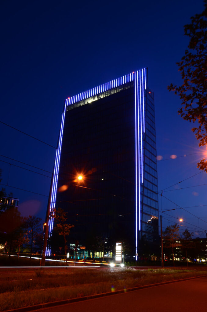 Die insgesamt 700 Meter LED-Strips wurden 2022 nach 12 Jahren Laufzeit durch die LightLife erneuert. Dabei wurde auf das LED Material aus der Fassadenbefahranlage heraus getauscht.