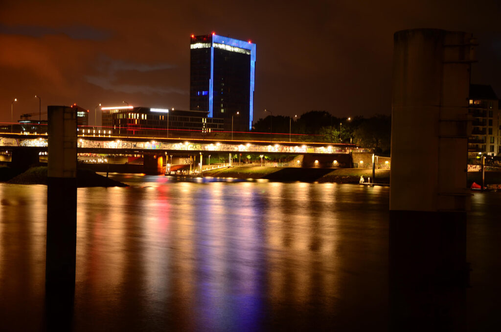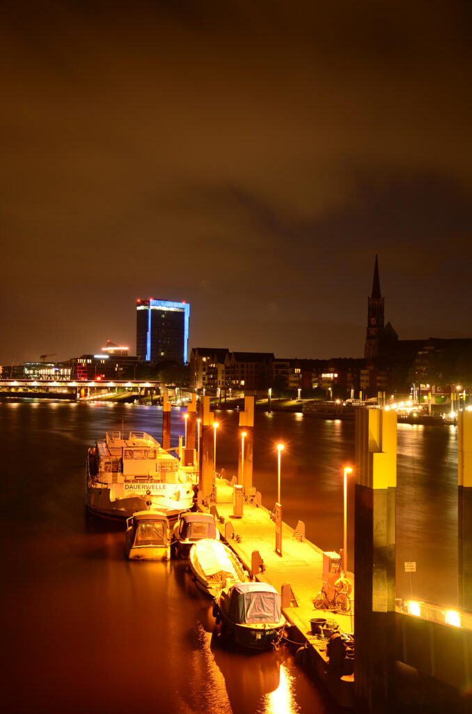 Panta rhei – Alles fließt“ unter diesem Motto leuchtet ein neuer Stern am Bremer Weserufer: der 82 Meter hohe Weser Tower. Am 07. Dezember 2010 drückten der Star-Architekt Helmut Jahn (Chicago) und der Lichtkünstler Yann Kersalé (Paris) gemeinsam an der Weserburg den Startknopf für die Fassadenbeleuchtung des höchsten Bremer Bürogebäudes. Von hier aus hatte man, als der Nebel sich letztlich lichtete, einen weit reichenden Panoramablick auf die Einweihungs-Illumination des Weser Towers im Herzen des Weser Quartiers in der Überseestadt.